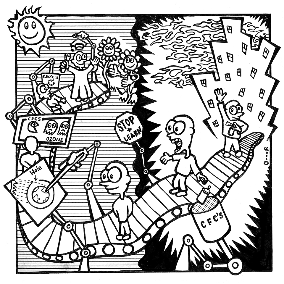 ink on paper illustration for the Savannah edition of Creative Loafing. The illustration is about learning about CFCs.